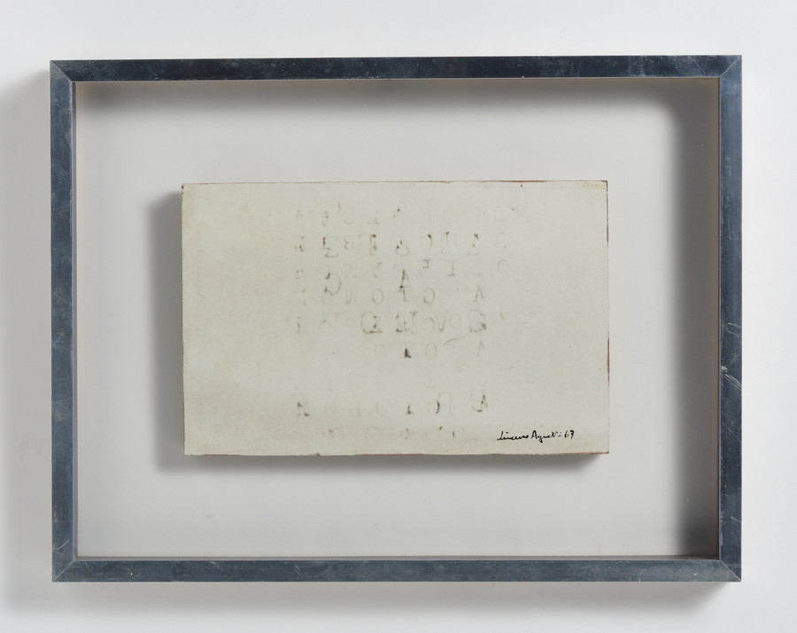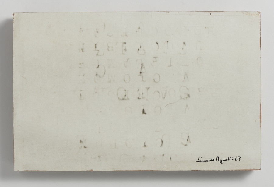 AGNETTI VINCENZO (1926 - 1981) OLTRE IL LINGUAGGIO . 1967. Inchiostro su tela sensibilizzata su tavola. Cm 27,50 x 18,00. firma e data