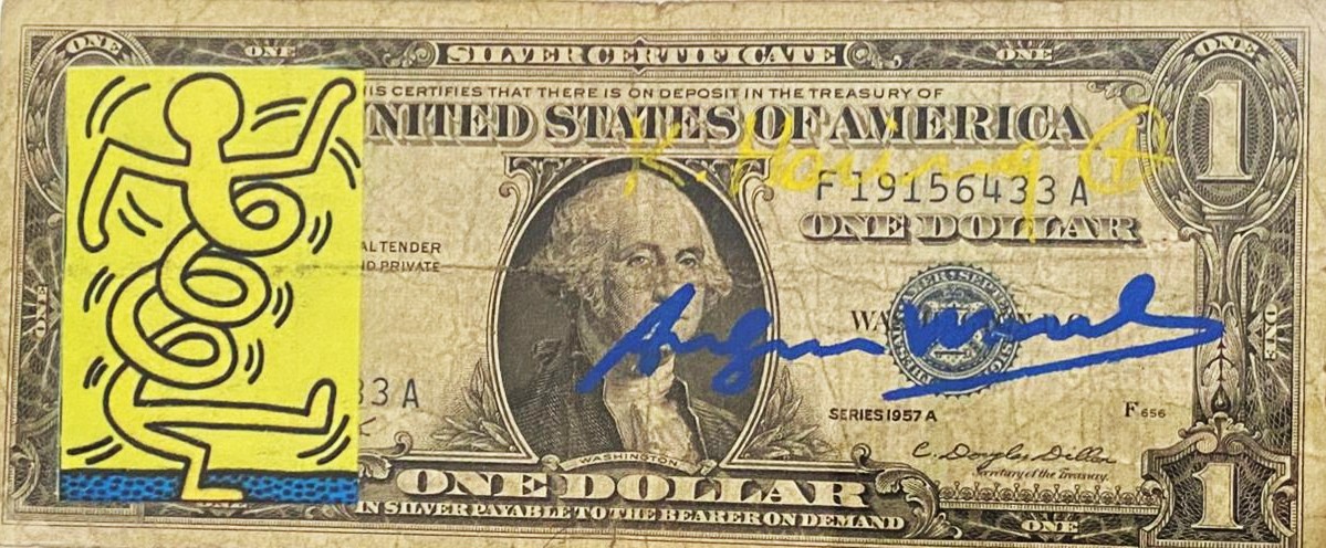 Banconota da 1 dollaro firmata da Keith Haring e Andy Warhol cm 6,6×15,6