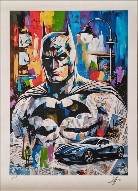 DE LEO RAFFAELE Taranto 1970 "Batman" Stampa su carta professional premium opaca 230gr, cm 50x70 del 2024. Firmata sul fronte in basso, tiratura 3/10 a sinistra. Certificato di autenticità a cura del Maestro.