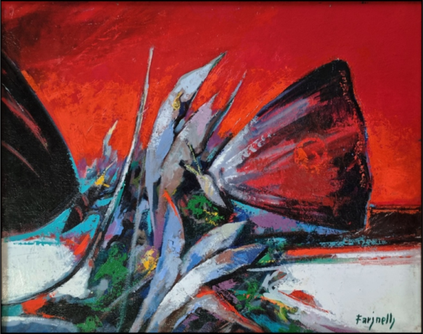 FARINELLI EZIO Rieti 1937 "Senza titolo" Olio su tela cm 50x40 del 1988. Firmato sul fronte in basso a destra. Sul retro firma, data, tecnica e numero d'archivio.