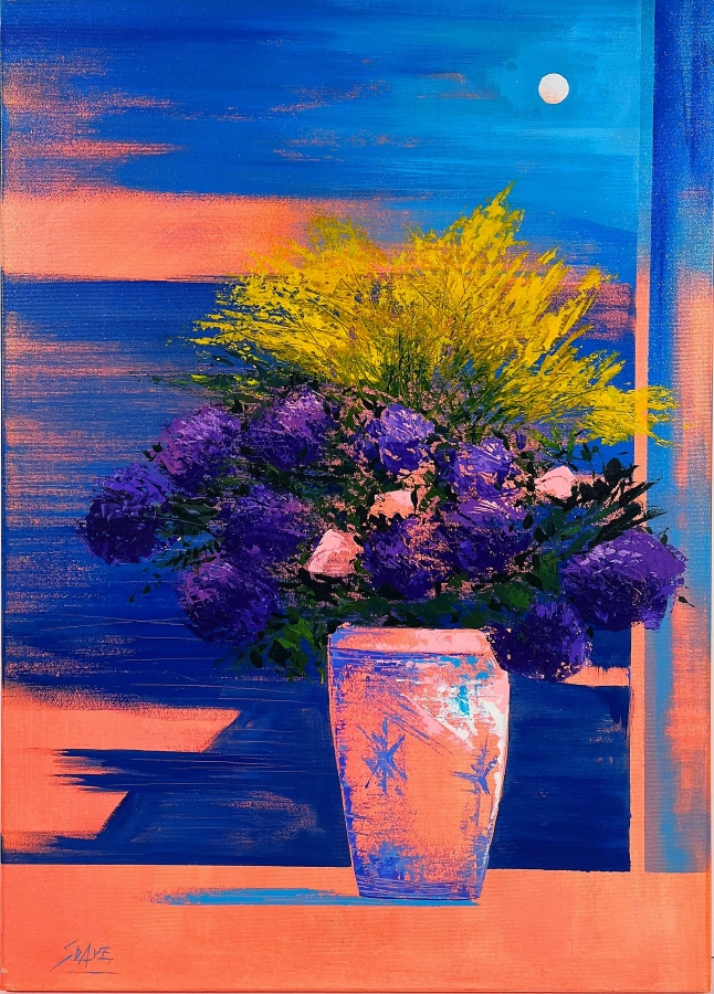 SOAVE MARIO Forte dei Marmi 1955 "La mia finestra" Olio su tela cm 50x70. Al verso firmato ed intitolato.