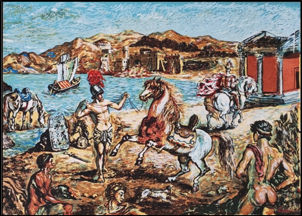 DE CHIRICO GIORGIO Grecia 1888 - Roma 1978 "La battaglia"