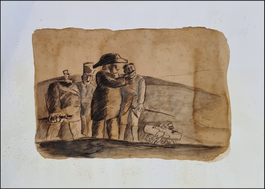 BORGHESE FRANZ Roma 1941 - 2005 "Senza titolo" Acquerello, carboncino e matita su carta Fabriano cm 70x50. Firmata sul fronte in basso a destra. (Presenta fioriture). Provenienza eredi Borghese.