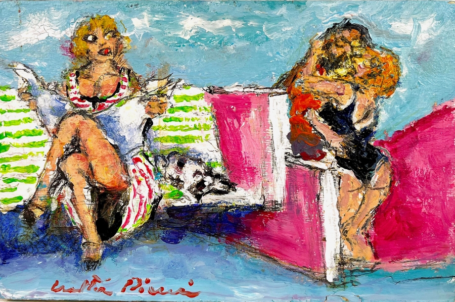 PIACESI WALTER Ascoli Piceno 1929 - Fermignano 2022 "Sala d'attesa" Olio su tavola cm 24x18 del 2019. Firmato sul fronte in basso a sinistra. Autentica ed archiviazione su foto.