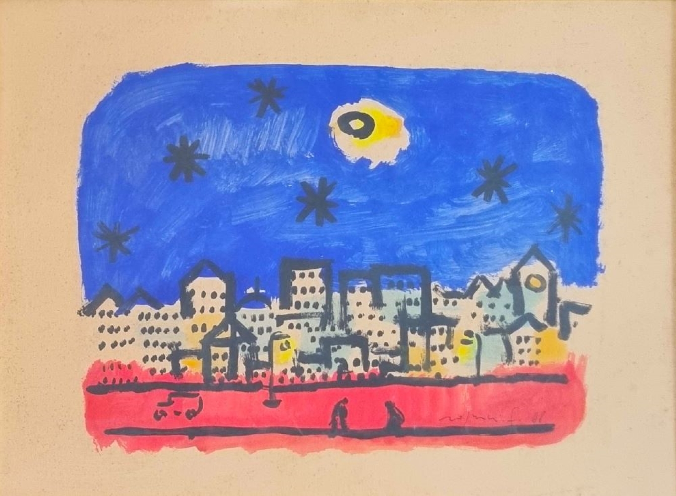 ROGNONI FRANCO Milano 1913 - 1999 "Periferia" Tempera su carta intelata cm 64x48 del 1968. Firmata e datata sul fronte in basso a destra. Al verso tecnica, dichiarazione di autenticità dell'Artista e timbro della Galleria Giarre. Certificato di autenticità a cura di Galleria Giarre. Opera registrata presso l'Archivio Rognoni come da dichiarazione su foto. Certificato di garanzia di altra casa d'aste.