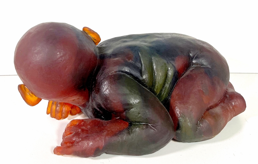 RABARAMA - PAOLA EPIFANI Roma 1969 "Abbando-nato" Scultura monotipo in gomma e pigmenti cm 20x42x30. Intitolata sul piede. Opera registrata presso l'Archivio Vecchiato Arte. Dichiarazione di garanzia e provenienza a cura di Vecchiato Arte, su foto.
