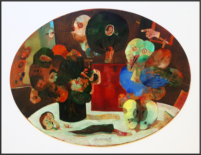 POSSENTI ANTONIO Lucca 1933 - 2016 "Senza titolo" Olio su tavola cm 42x30 (misura dell’ ovale) del 2000, firmato sul fronte in basso al centro e sul retro. Autentica ed archiviazione su foto a cura dell'archivio galleria Fantasio & Joe di Lucca. Certificato di garanzia di altra casa d'aste.