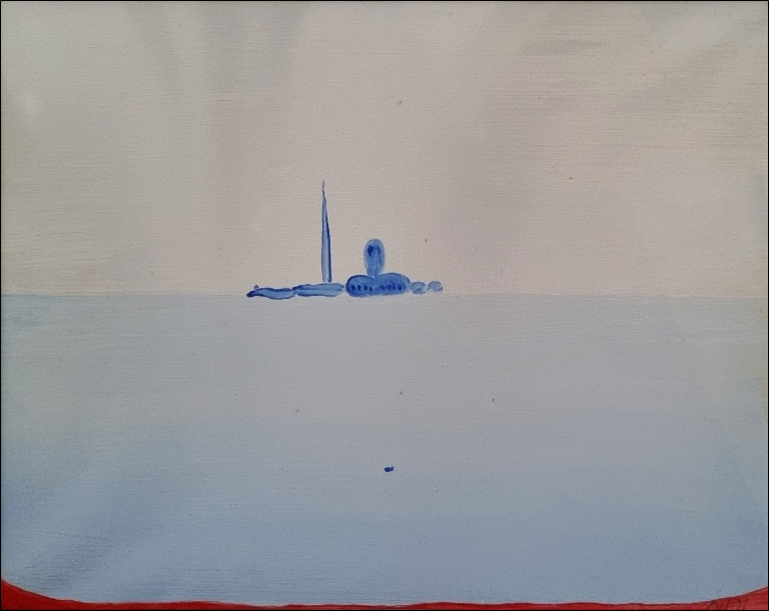 GUIDI VIRGILIO Roma 1891 - Venezia 1984 "San Giorgio" Olio su tela cm 50x40 del 1982. Firmato sul fronte in basso a destra. Sul retro titolo, firma e data. Autentica su foto a cura del Maestro.
