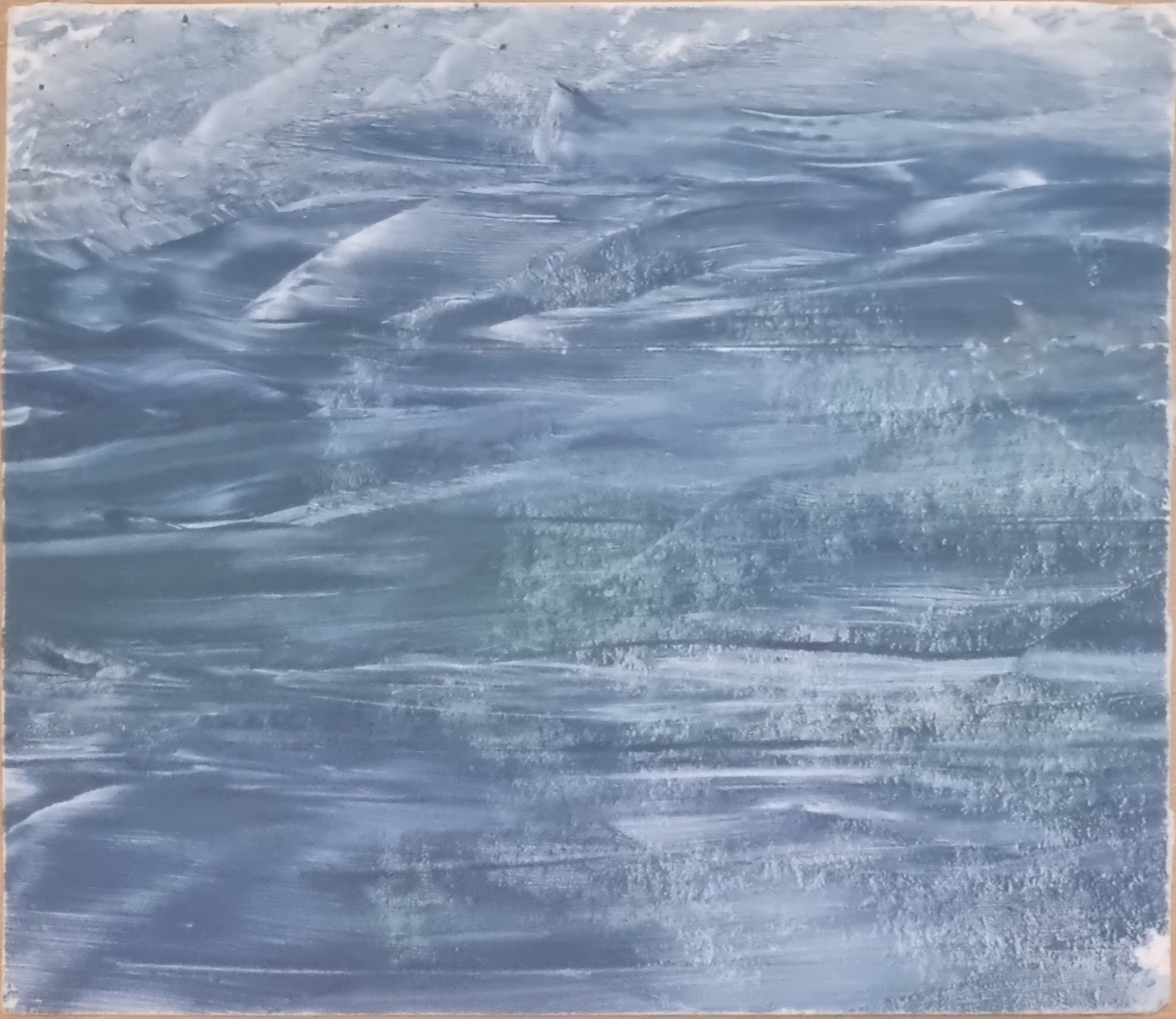 VITALI VELASCO Bellano 1960 "Studio di onde" Olio su carta intelata cm 22x19 del 1991. Al verso firma, data e timbro Italian Factory. Autentica su foto a cura del Maestro.