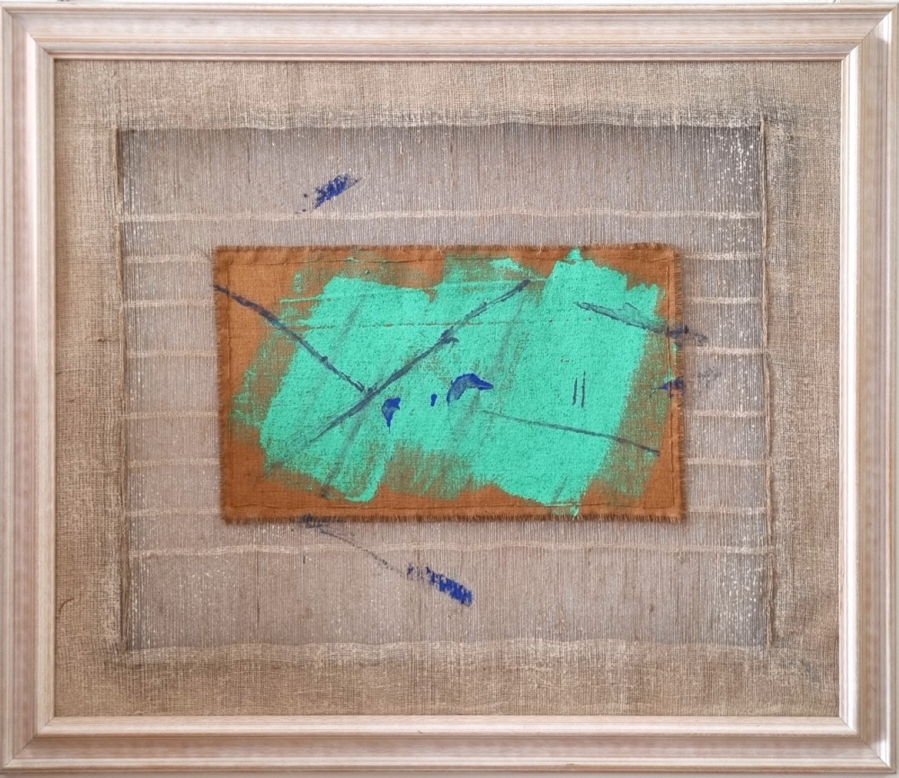 EMBLEMA SALVATORE Terzigno 1929 - 2006 "Senza titolo" Terre colorate su tela di juta cm 120x100 del 2005. Firmata e datata al verso. Certificato di autenticità a cura di Auricchio Raffella Emblema con numero di archivio. Certificato di autenticità a cura di altra galleria.