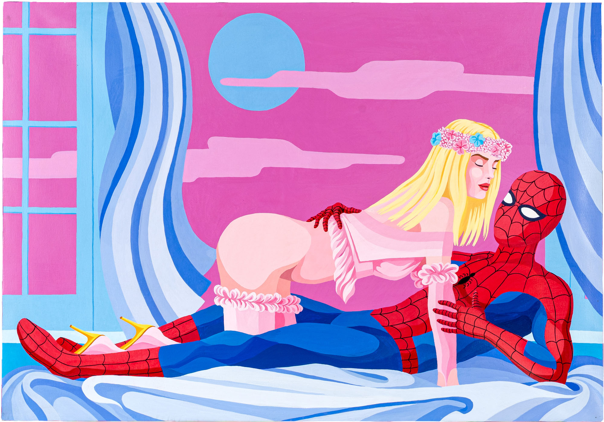 GIUSEPPE VENEZIANO(1971)Spiderman Super Sex2006Acrilico su tela70 x 100 cmFirma, data e titolo al retroPROVENIENZA:Collezione privata, Milano