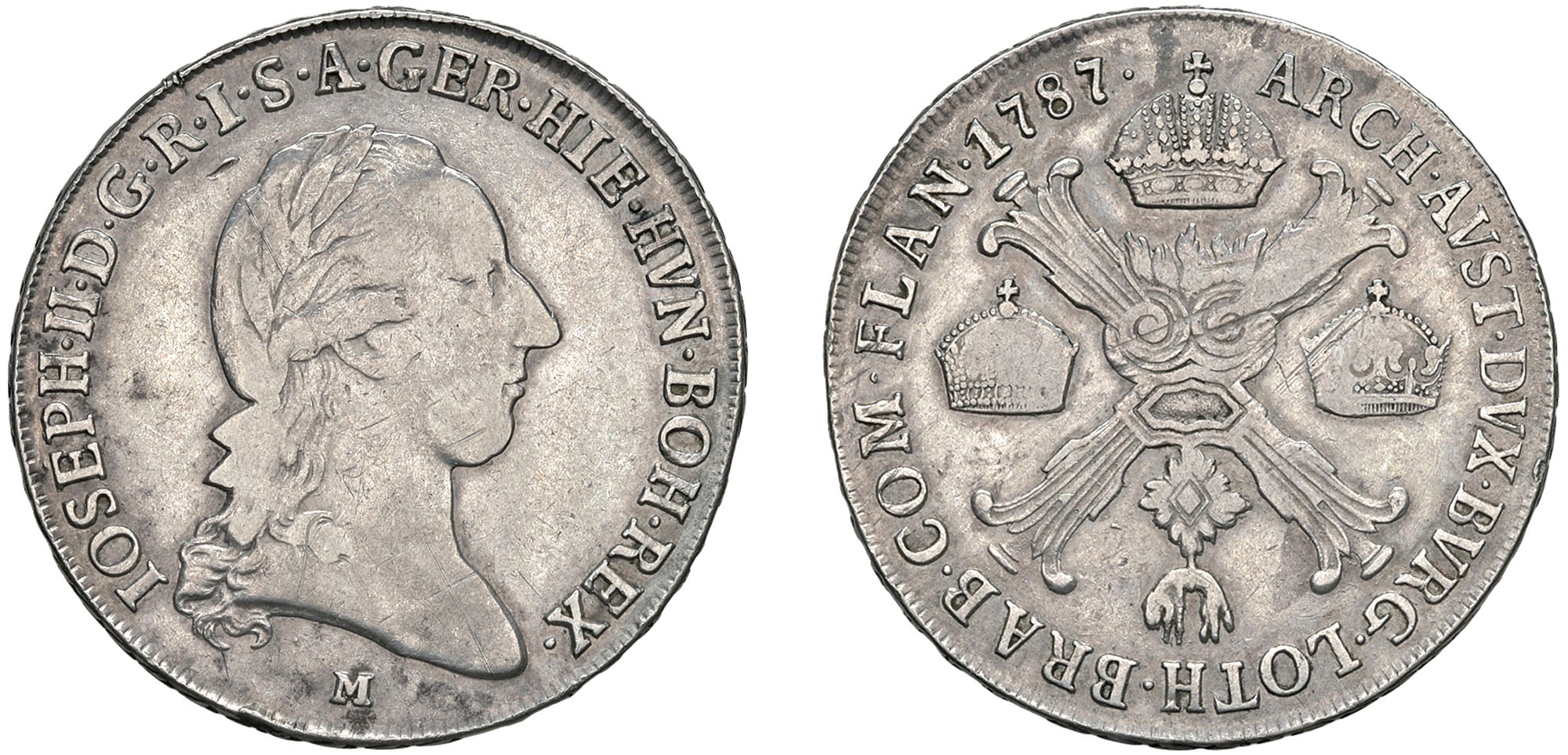 GIUSEPPE II D'ASBURGO-LORENA, monetazione imperiale (1780-1790) - Mezzo crocione 1787, Milano.Argento, 14,66 gr.Dritto: Testa a destra laureata; - Rovescio: Croce di Borgogna accantonata dalle corone d'Austria, Ungheria e Boemia, da cui pende il Toson d'oro.Crippa 18/B RaroMB-BB