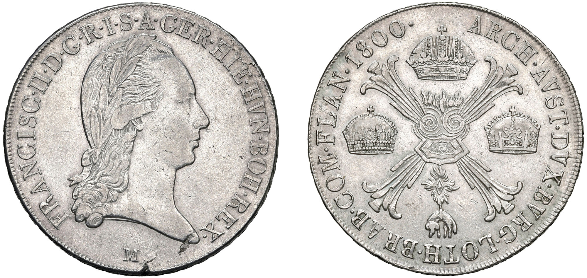 FRANCESCO II D'ASBURGO-LORENA, Restaurazione asburgica degli Austro-Russi (1799-1800) - Crocione 1800, Milano.Argento, 29,50 gr.Dritto: Testa a destra laureata; - Rovescio: Croce di Borgogna accantonata dalle corone d'Austria, Ungheria e Boemia, da cui pende il Toson d'oro.Crippa 3/C Non comuneLieve carenza di tondello al D/ e impercettibili graffietti di pulizia.BB/q.SPL