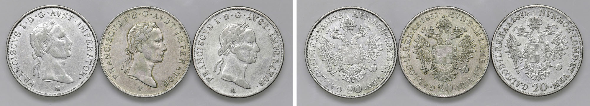 Lotto 42 | FRANCESCO I D'ASBURGO-LORENA, monetazione per l'Impero (1815-1835) - Lotto di 3 monete da 20 Kreuzer, II tipo.
