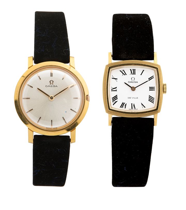 OMEGA Lotto composto da due orologi laminati in oro giallo: -Orologio di...