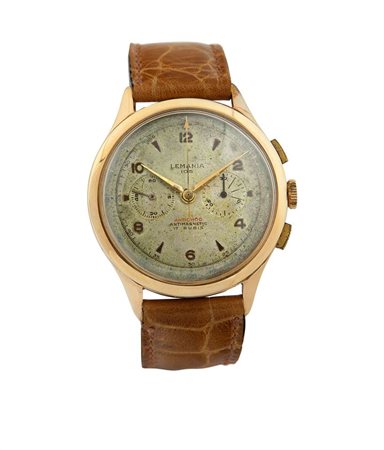 LEMANIA Cronografo a due contatori, anni '50 Diam 39 Cassa in oro rosa in tre...
