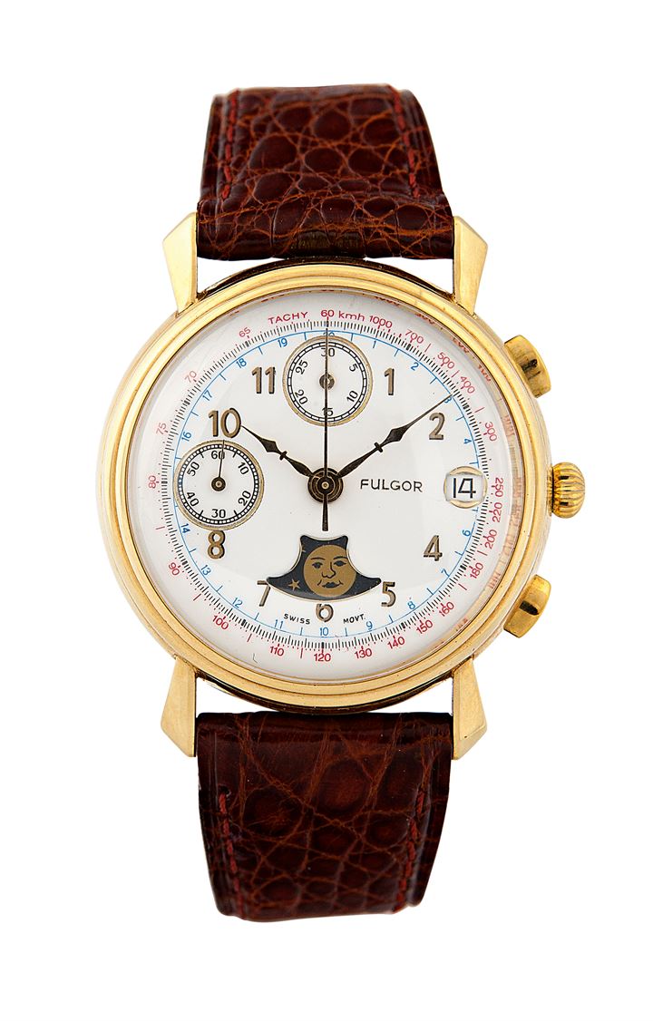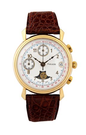 FULGOR Cronografo a due contatori, anni '90 Diam 38 Cassa in oro giallo con...
