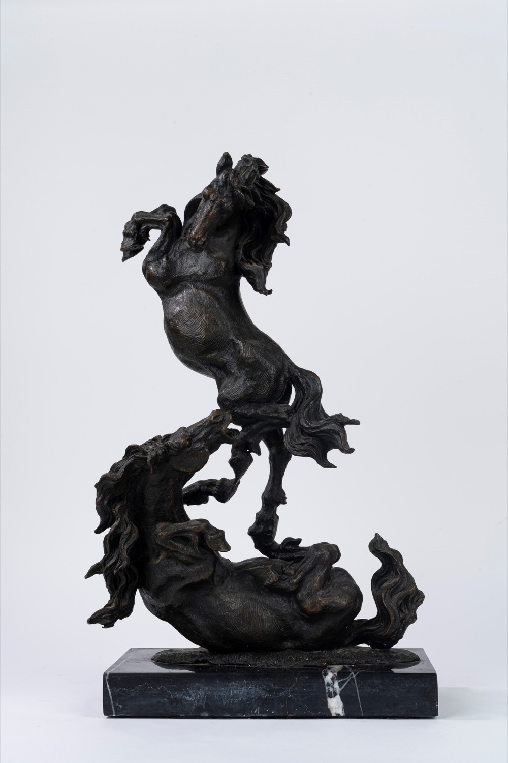Lotto 2 | Scultura in bronzo a patina scura, raffigurante due cavalli che lottano, secolo XX