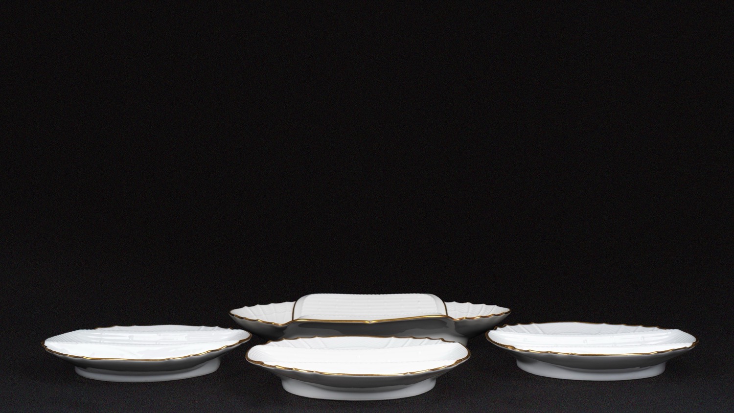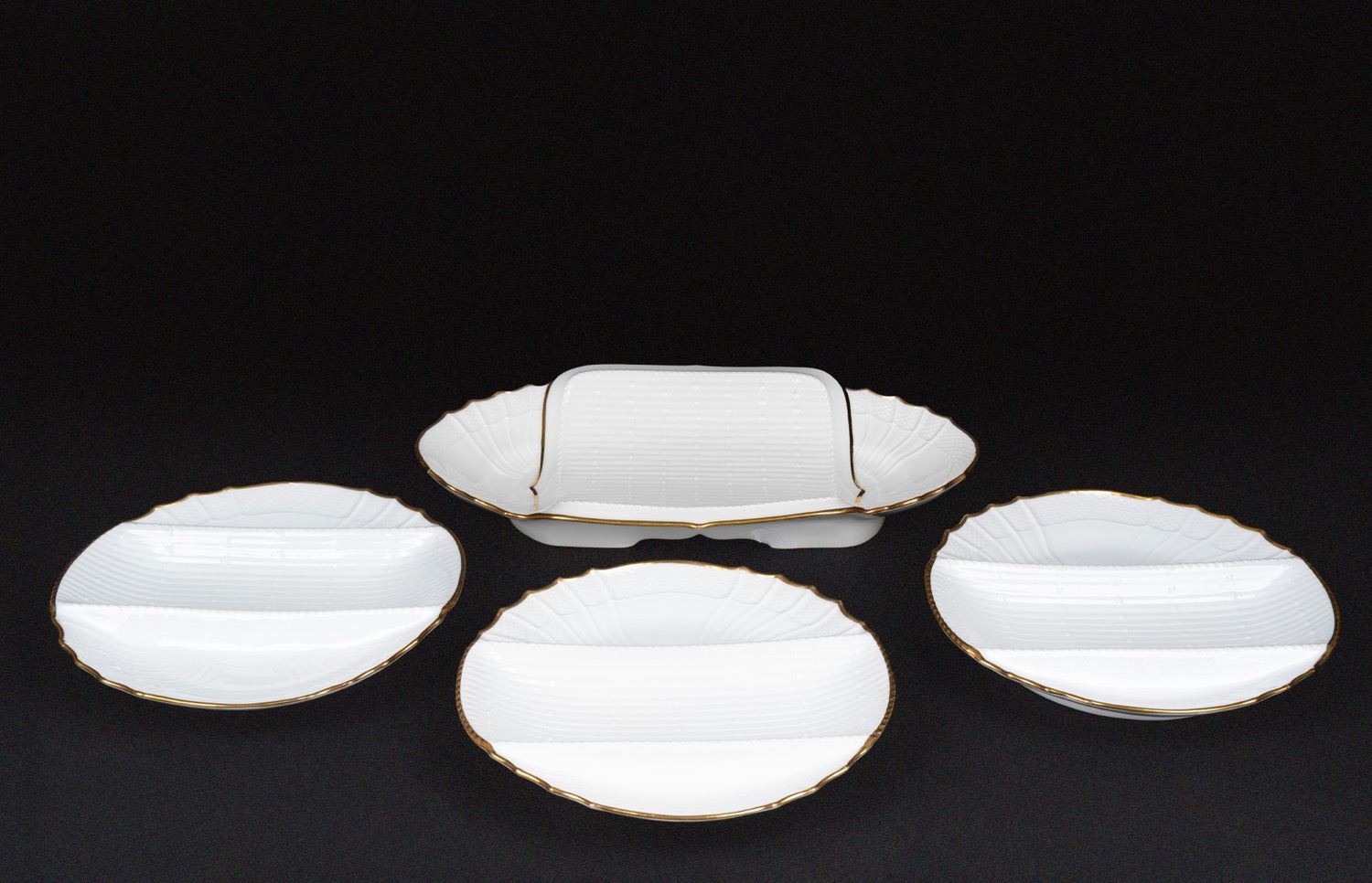 Servizio per asparagi in porcellana bianca con bordi in oro, Ginori anni '50 del Novecento