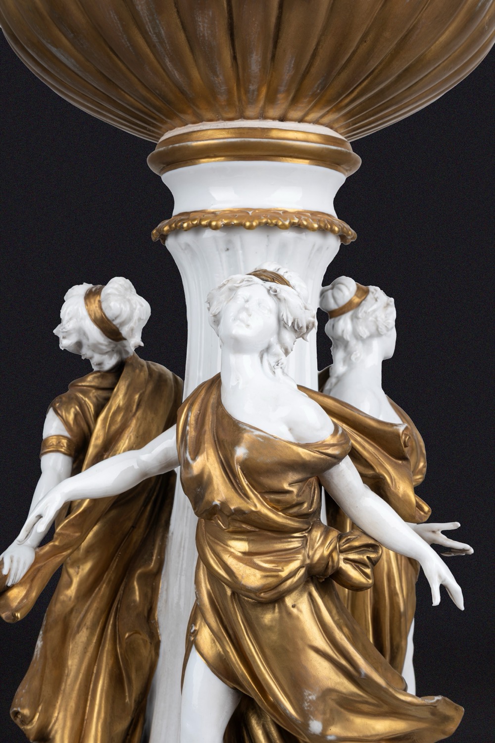 Grande vaso in porcellana bianca e oro, con menadi danzanti, prima metà secolo XX
