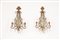 Due appliques in legno intagliato e dorato con pendenti in vetro