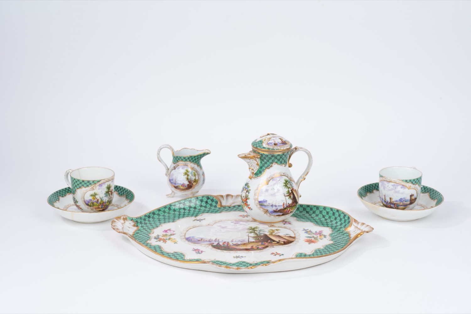 Parte di servizio tête-à-tête in porcellana policroma Meissen, secolo XVIII