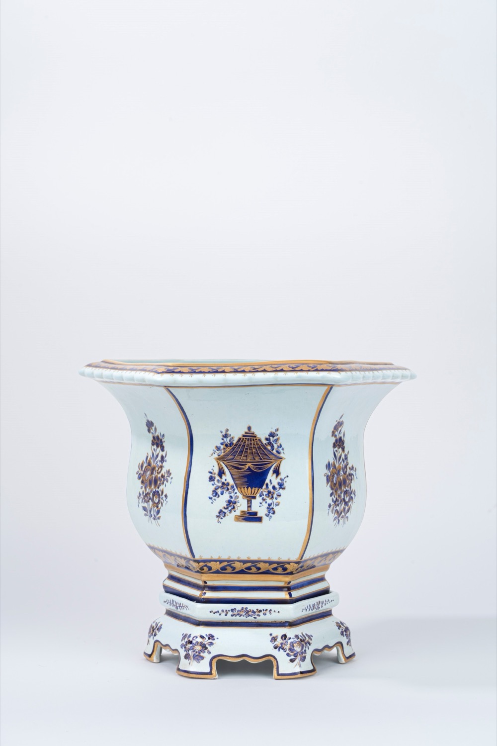 Vaso esagonale in porcellana, con base, inizi secolo XX