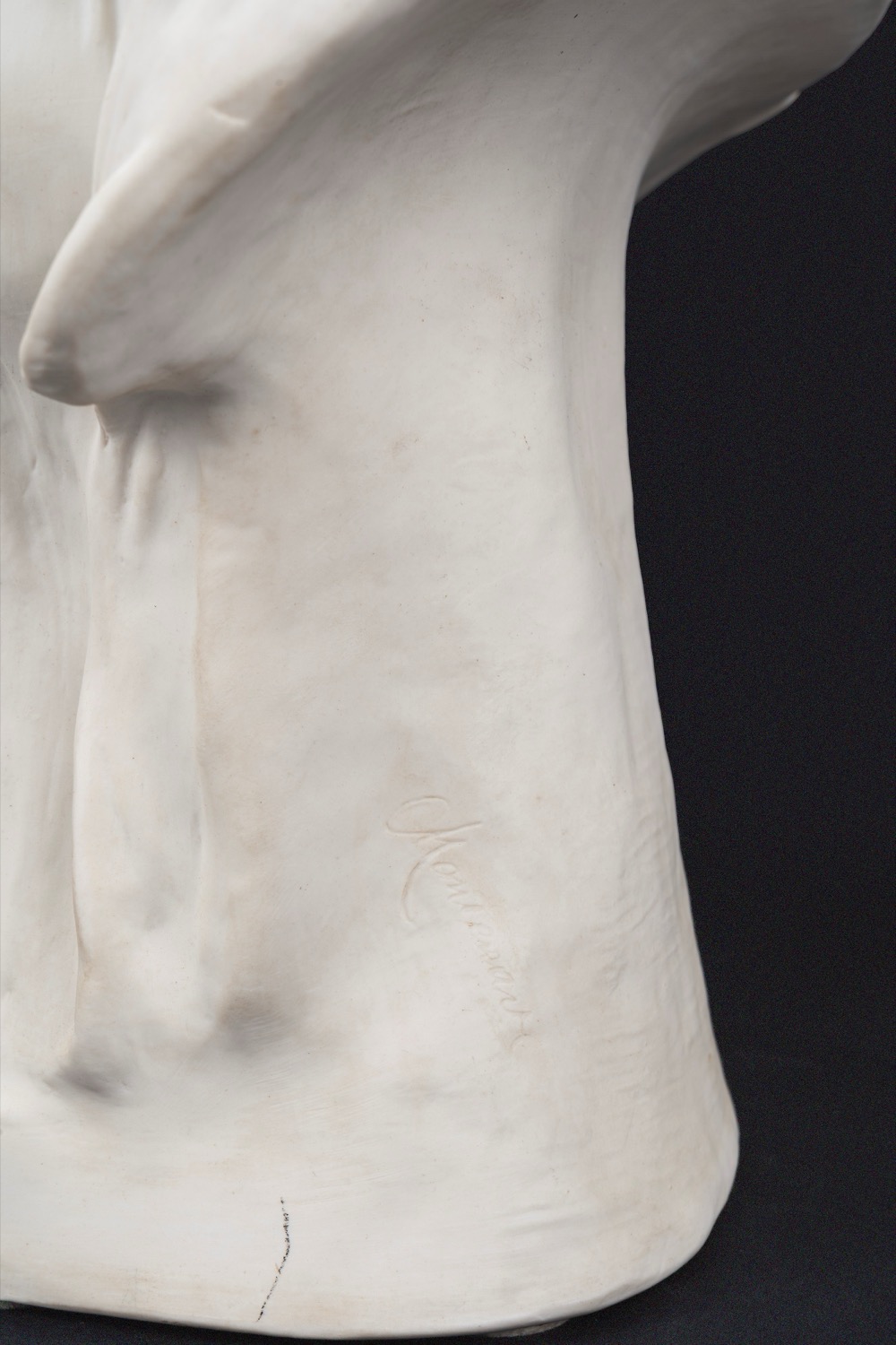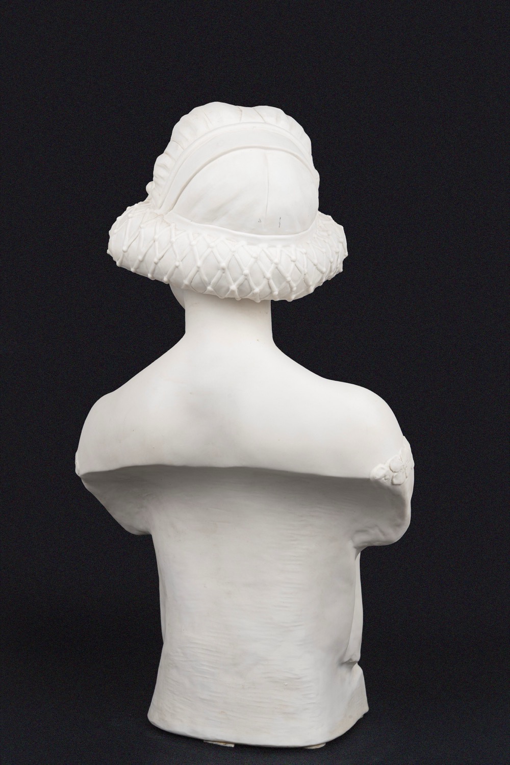 Scuola francese, inizi secolo XX - Scultura in biscuit raffigurante giovane donna in abiti rinascimentali