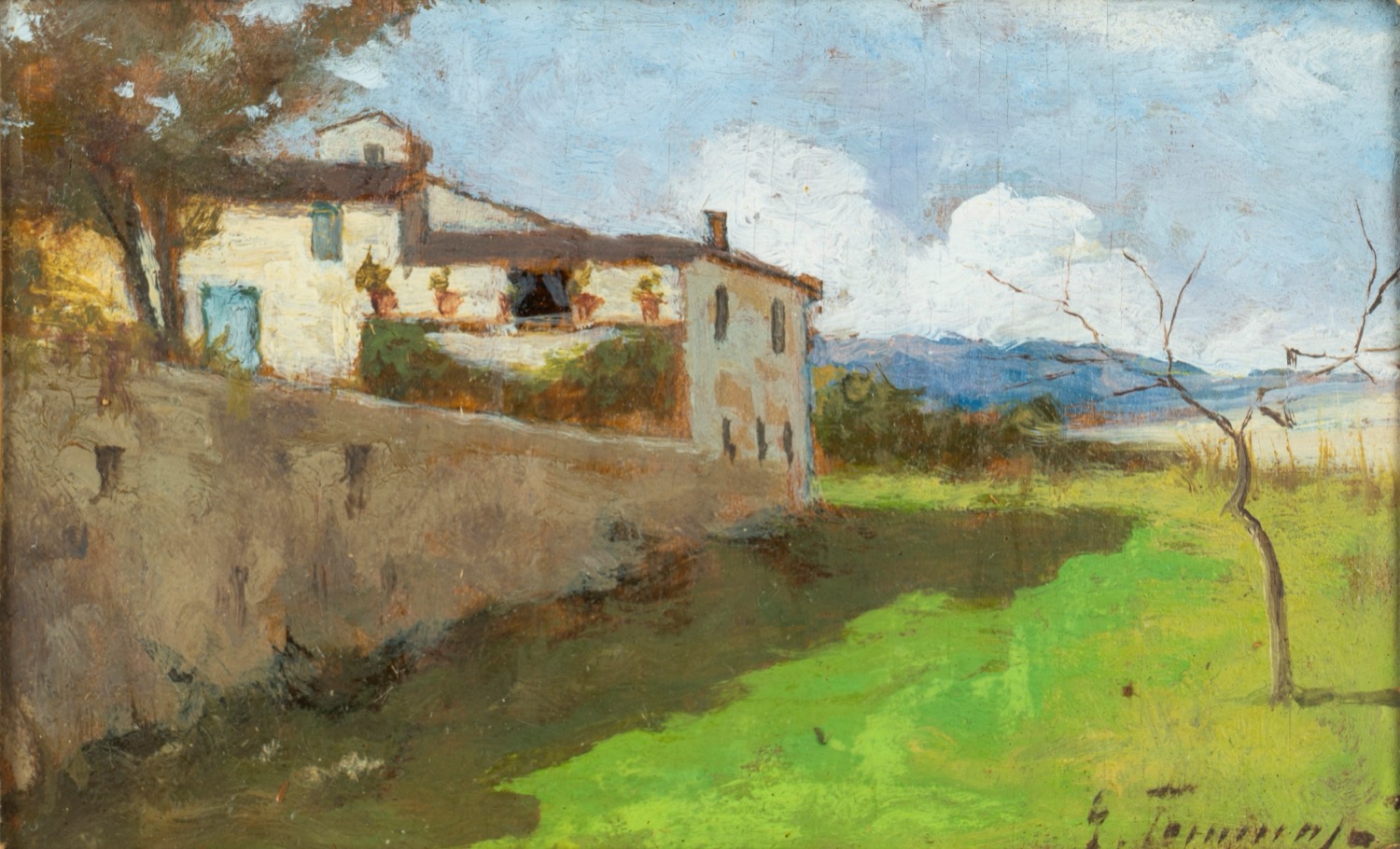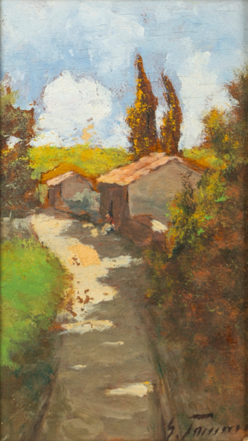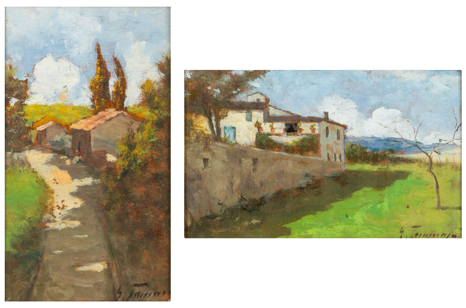Gino Tommasi (Livorno 1180 - 1942) - Due dipinti raffiguranti vedute di casali nella campagna