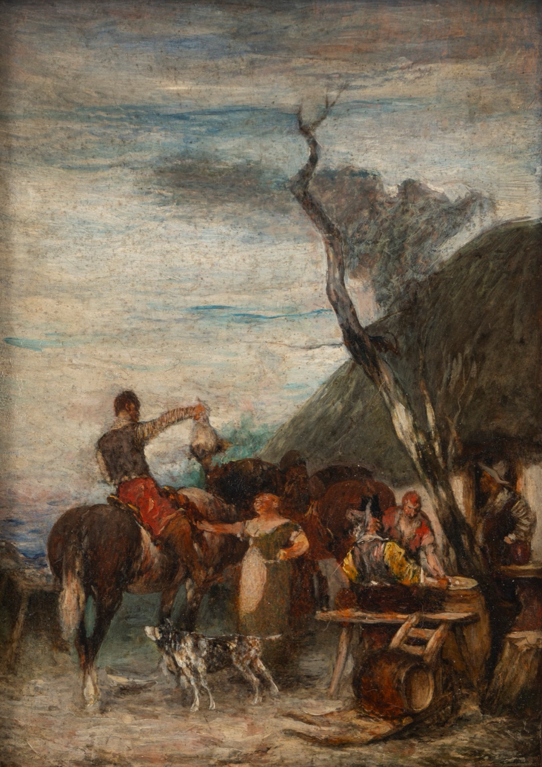Scuola nord europea, secolo XIX - Scena di genere presso un'osteria
