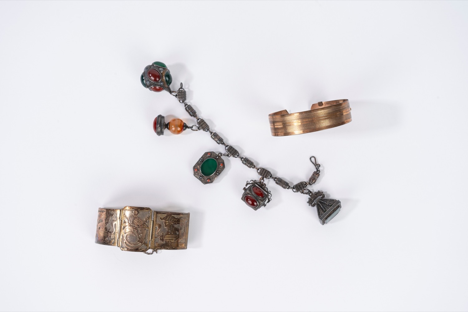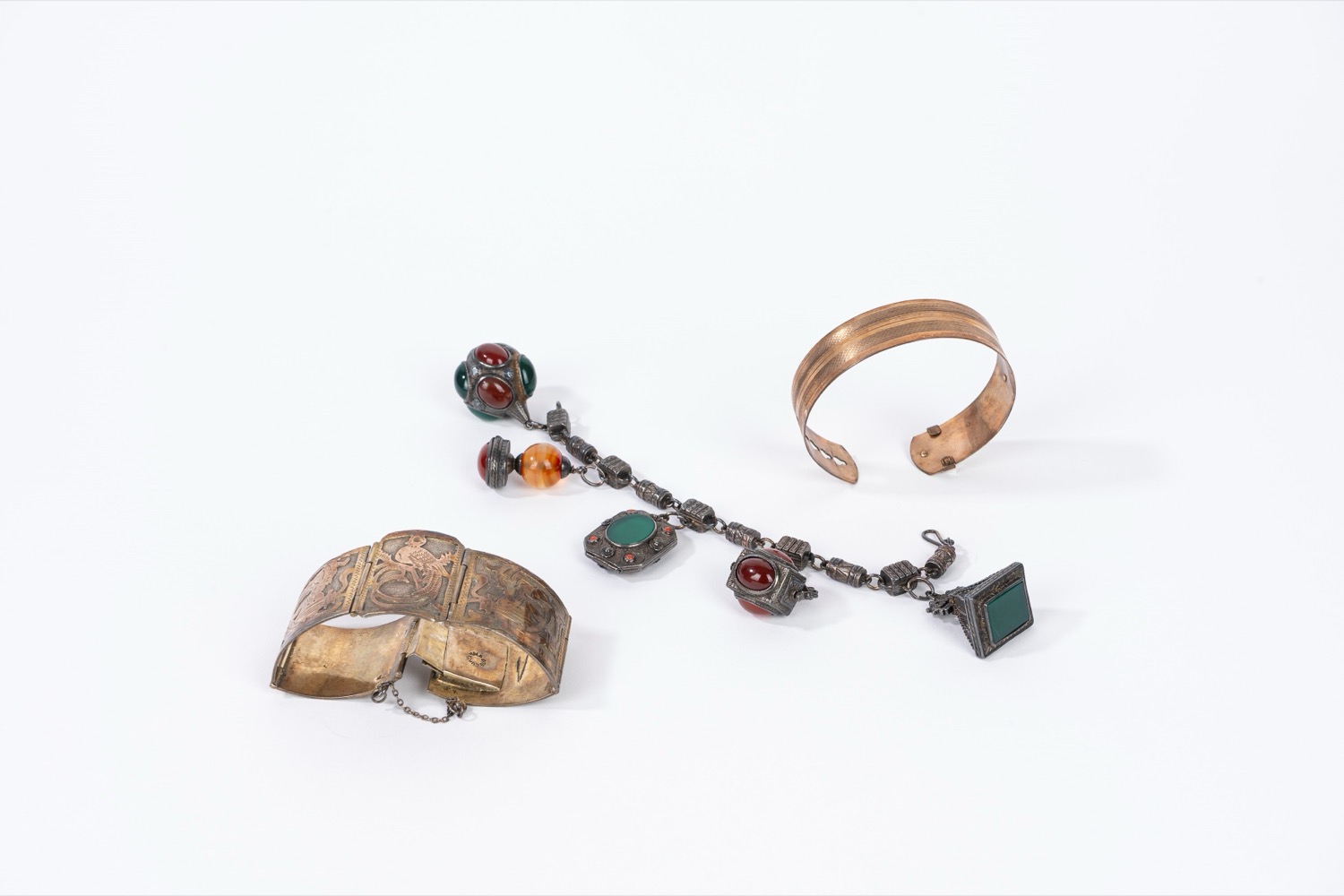 Lotto di tre bracciali, di cui uno in argento 900, Guatemala