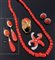 Pendenti, in oro giallo con gocce e semisfere di corallo rosso giapponese
