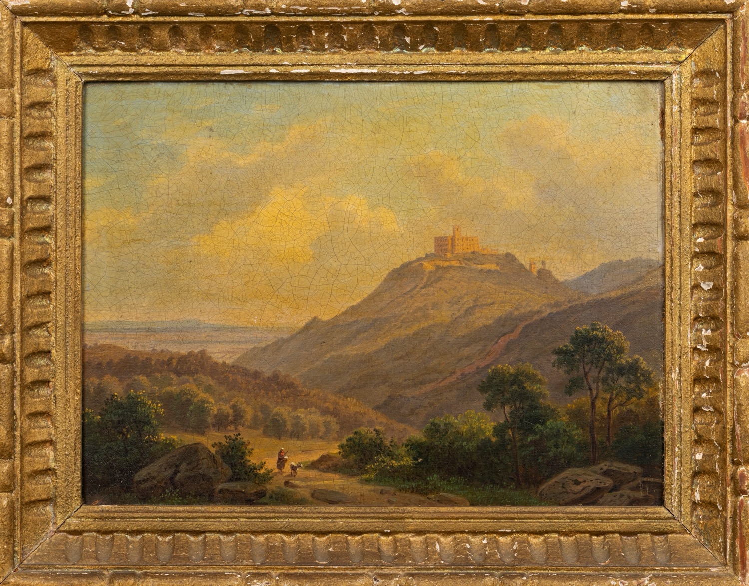 Lotto 341 | Scuola italiana, fine secolo XVIII - inizi secolo XIX - Paesaggio laziale con borgo turrito