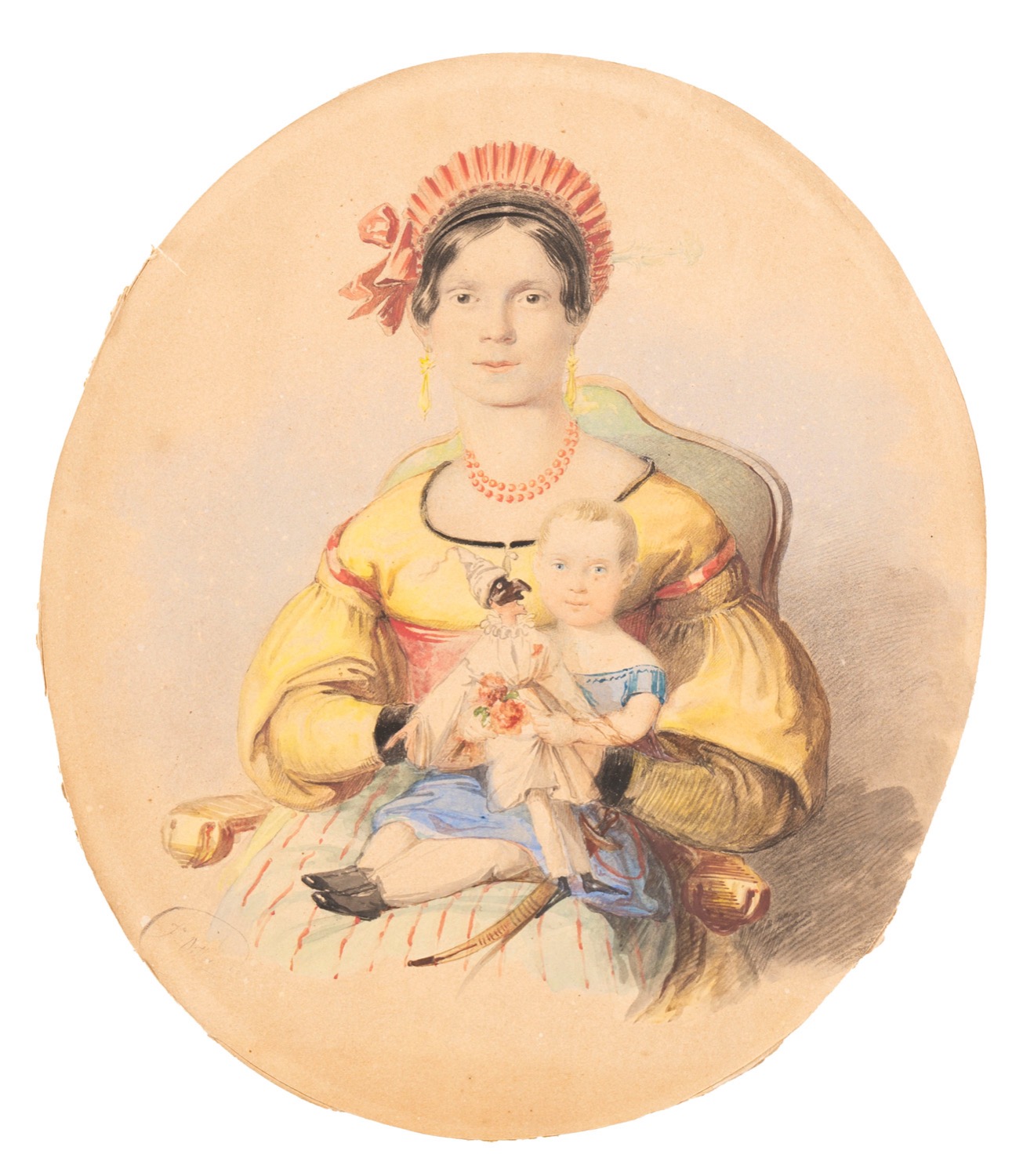 Scuola italiana, secolo XIX - Ritratto di giovane madre con il suo bambino