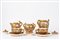 marchio sotto la basecomposto da due tazzine con piattino, teiera, lattiera e zuccheriera