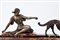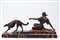 Scultura in bronzo su base in marmo policromo raffigurante Diana e levriero, anni '20-'30 del XX secolo