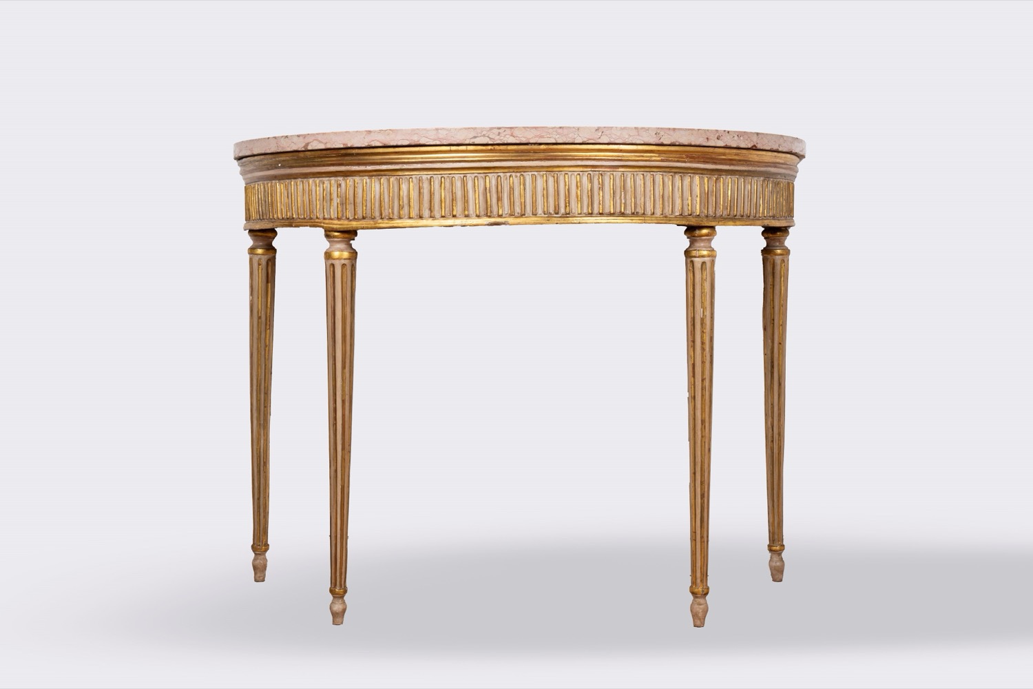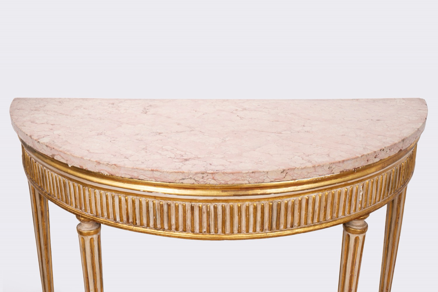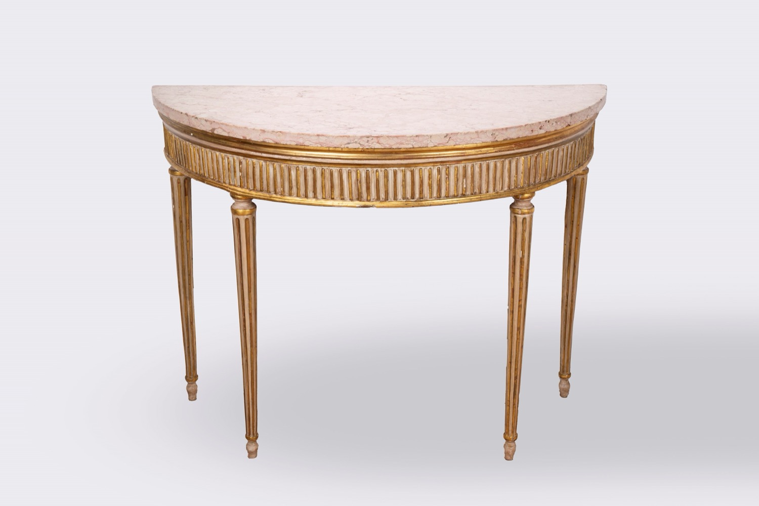 Coppia di consolle a demi lune in legno laccato e dorato, Napoli, Luigi XVI