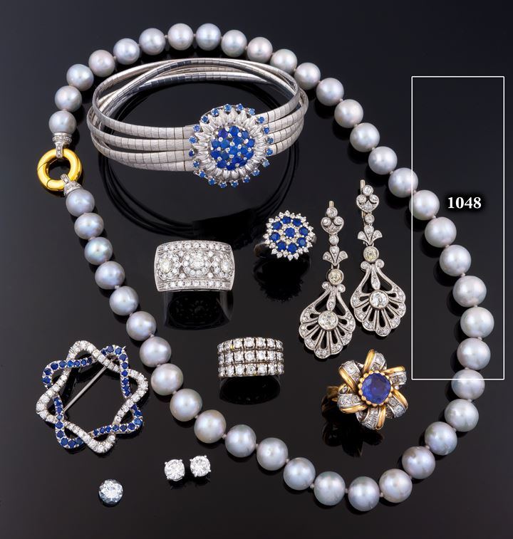 Lotto 1048 | GIROCOLLO Composta da un filo di perle grigie dal diam 9,5 di mm a 10,4 mm ....