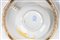 decorato a motivi floreali e dettagli in oro, con motivo a intreccio a rilievo nella tesa due piattini e sulla parte superiore della teiera con presa a rosellina