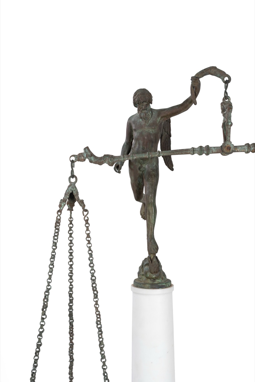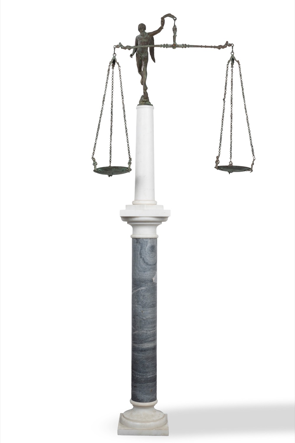 Fonderia Chiurazzi - Scultura in bronzo raffigurante la Bilancia della Giustizia, su doppia colonna in marmo grigio e bianco