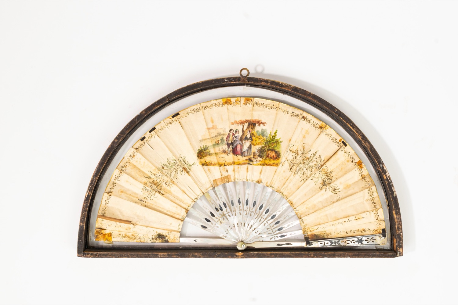 Ventaglio con pagina in carta e stecche traforate in madreperla, secolo XVIII