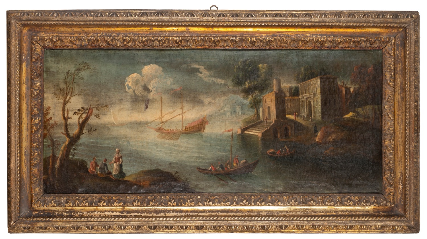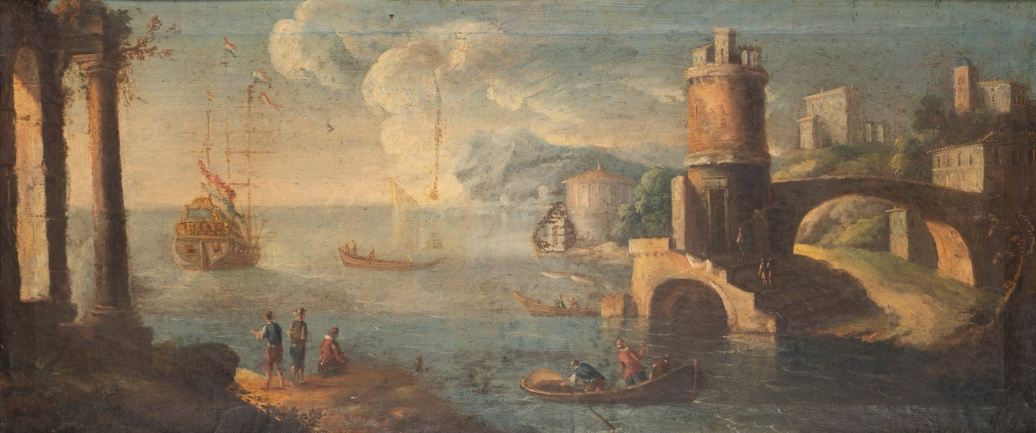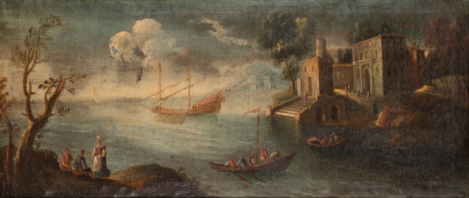 Scuola italiana, secolo XVIII - Marine con scene di porto