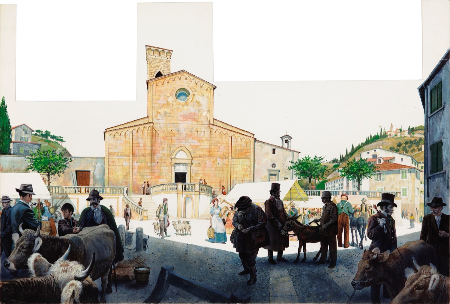 Illustrazione originale realizzata da Sergio per la sua celebre interpretazione de "Le avventure di Pinocchio" di Carlo Collodi, edita tra il 1961 e il 1965. Lieve piega al margine destro.