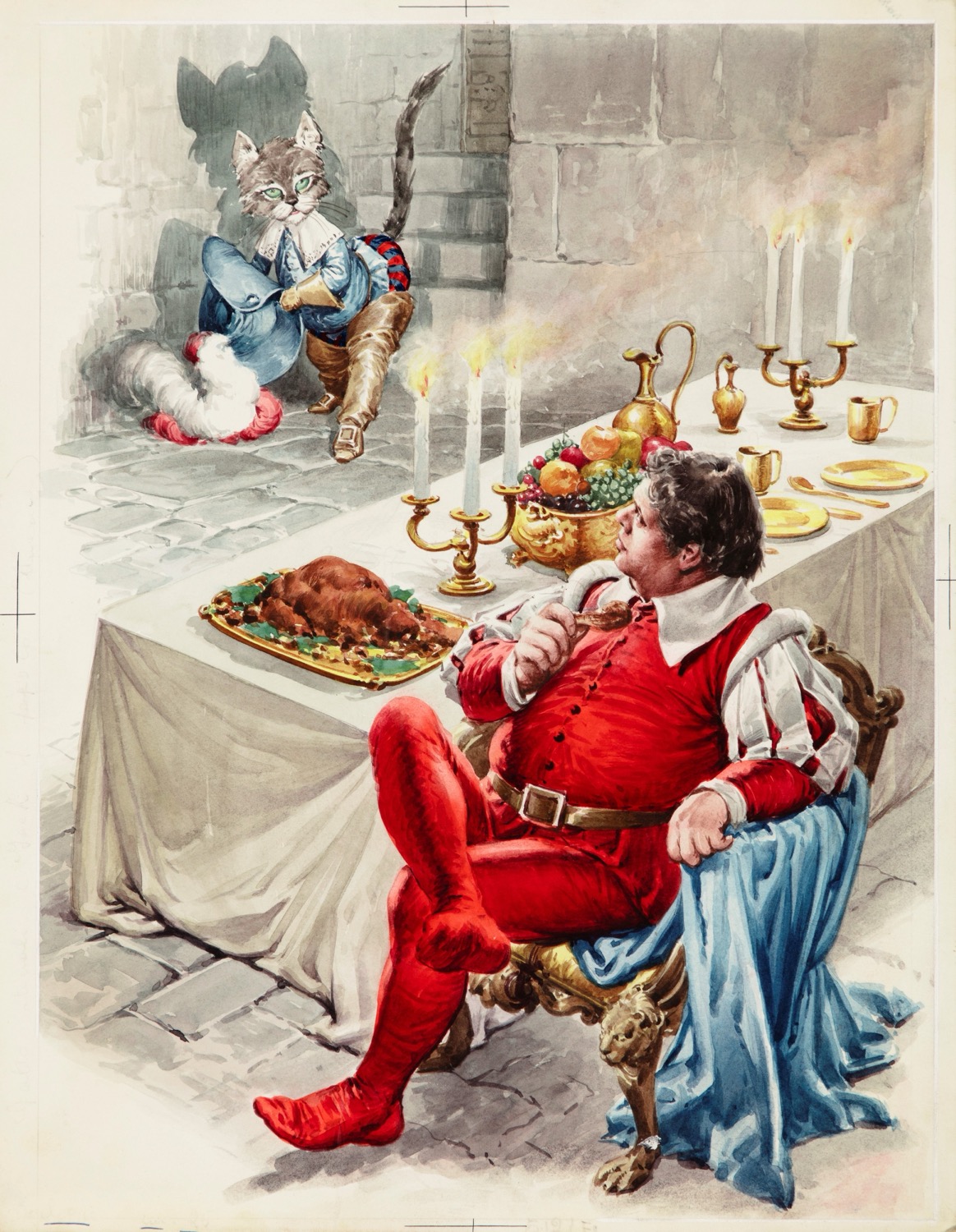 Illustrazione originale realizzata da Torchio per la fiaba "Il gatto dagli stivali" edita negli anni '60.