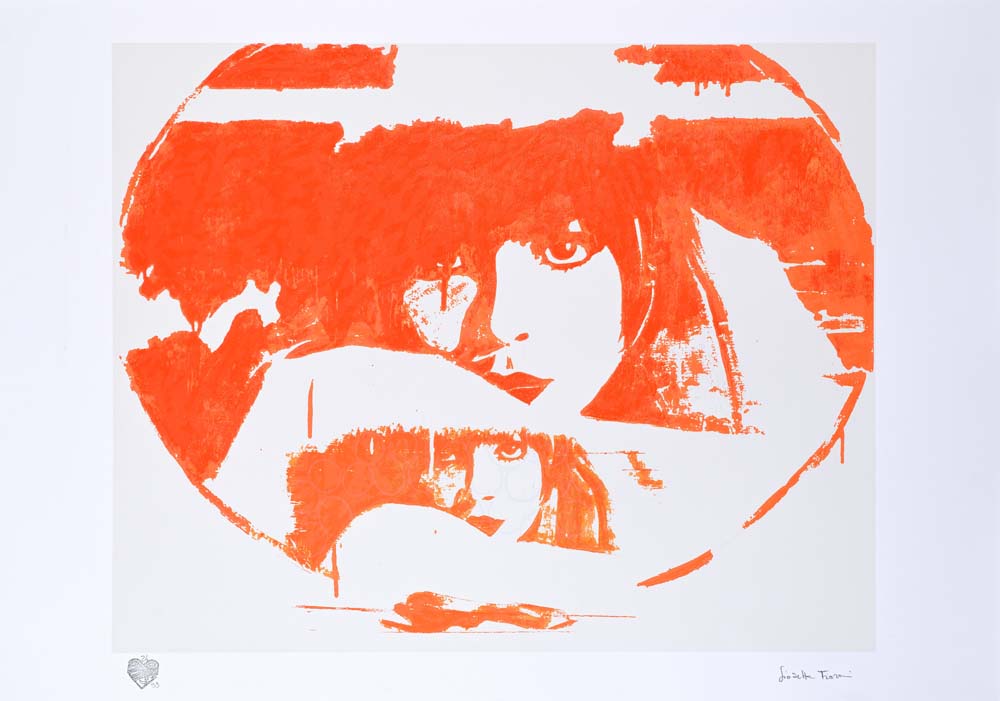 Doppio Liberty Firma e numerazione "Giosetta Fioroni 24/99". Timbro Goffredo Parise e Giosetta Fioroni Serigrafia polimaterica cm 70x100