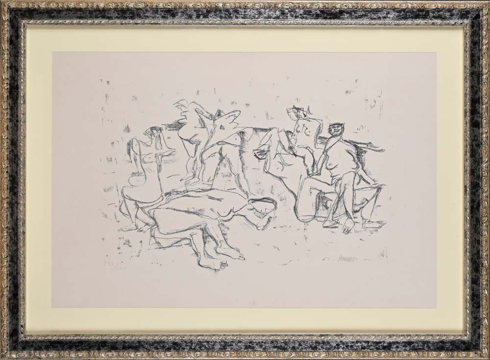 Bagnanti Firma e numerazione "Pirandello 292/300" Litografia cm 41x62 - in cornice cm 57,5x78