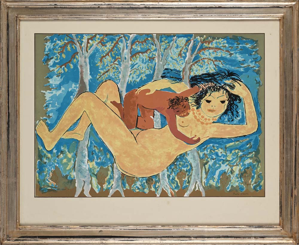 Figure nel bosco 1976 Firma, data e numerazione "Raphael, Roma '76, Prova d'autore" Serigrafia a 5 colori cm 50x70 - in cornice cm 75x90