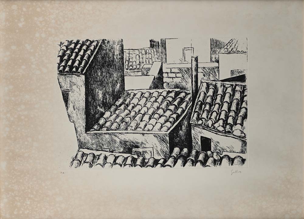 Renato Guttuso (Bagheria 1911 - Roma 1987) Tetti Firma e numerazione "Guttuso...
