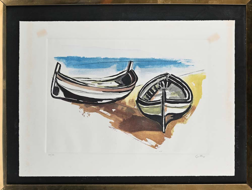Renato Guttuso (Bagheria 1911 - Roma 1987) Due barche Firma e numerazione...