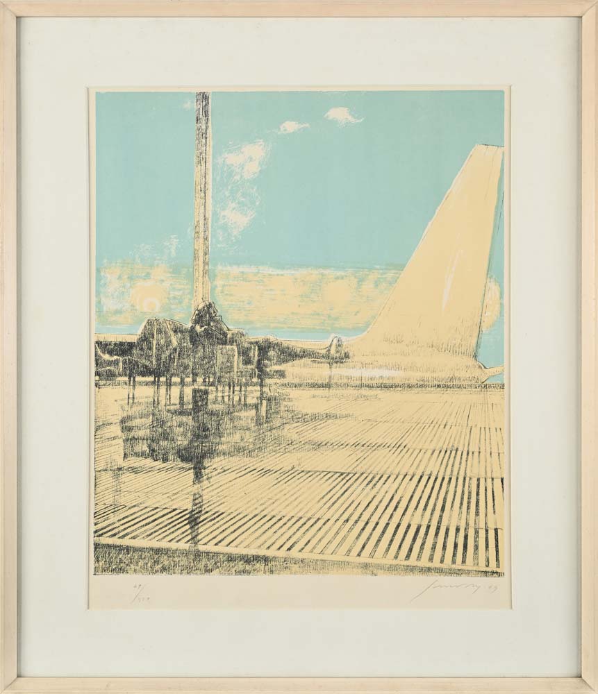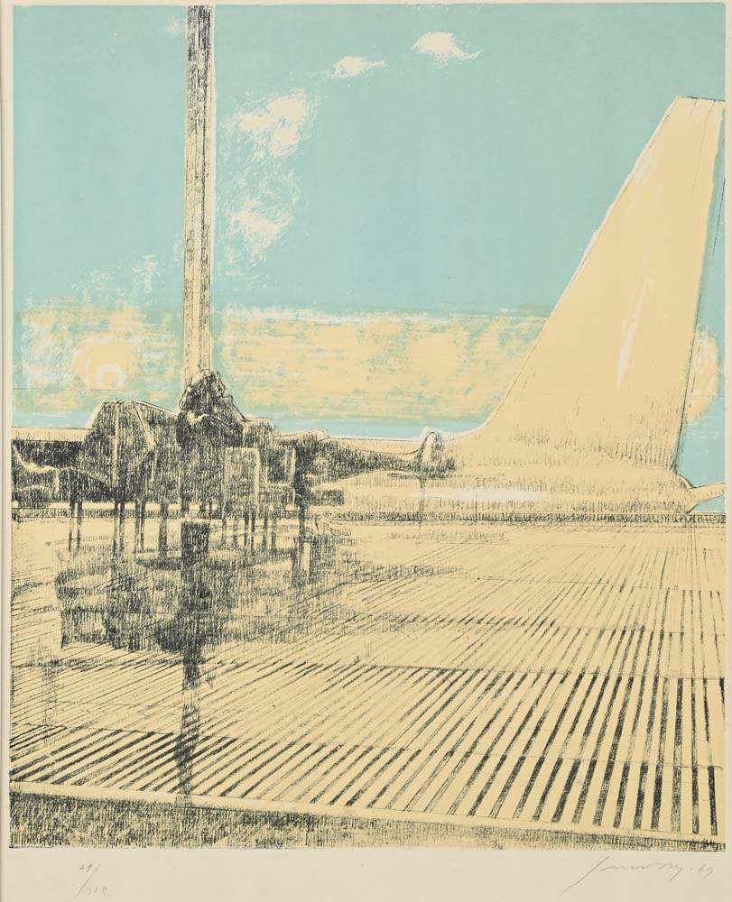 Aeroporto 1965 Firma, data e numerazione "Guccione '65, 49/220" Litografia cm 60x48 - in cornice cm 78x67